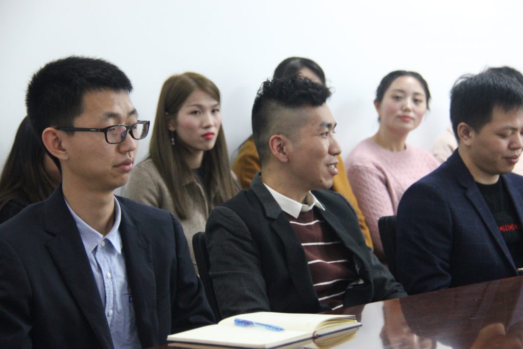 公司全體員工在會議上認真傾聽領(lǐng)導(dǎo)和其他同事發(fā)言